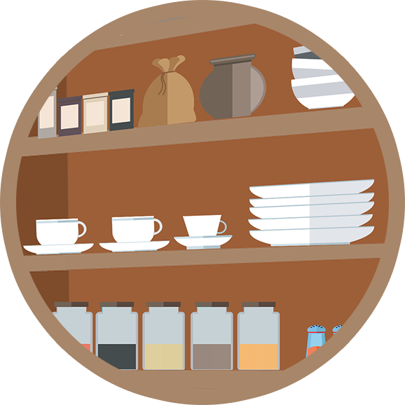 To easily create zones throughout your kitchen, think about everything you do there—from food preparation, cooking, to washing dishes and even brewing your favorite coffee. Then, organize the items that are used for a similar purpose in each area where you'll designate them. Introduce jars and boxes and add appropriate labels to help group these items together so you will know exactly where they’ll be when you need them next.