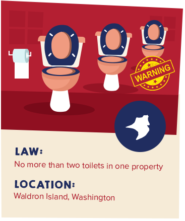 For any buyer, having the right number of bathrooms is crucial when looking for a home. But in Waldron, a tiny island located in the Puget Sound which sits between Washington State and Canada, there is a law that prohibits having more than two toilets in any property or building. The island isn't yet fully developed but does have a small elementary school and a post office. The ban is intended to help limit development on the island, and also seems to aim to conserve the town’s water supply. People who live there like it to be kept private and quiet, and want to keep it that way.