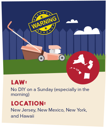 Want to sleep in a little longer on a Sunday? But you couldn't because you got woken up early in the morning by a neighbor mowing their lawn, using a leaf blower, or fixing their roof. You won’t have this kind of problem in states like New Jersey, New Mexico, New York, and Hawaii. In these states, it is illegal for DIYs to be done on a Sunday, so as to avoid conflict between neighbors.