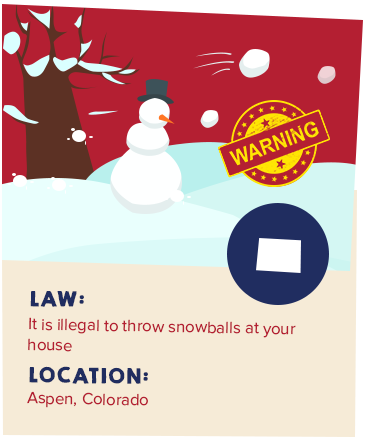 Want to move or just visit Aspen, Colorado to experience the cold winters and have some epic snowball fights? While millions of people flock to Aspen every year for some fun in the snow, be reminded that it is illegal to have snowball fights in the area. To put it clearly, you can't throw snowballs at any public or private property, people, or vehicles, according to the Aspen municipal code. It takes the fun out of a snowstorm, eh?