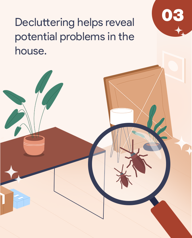 Decluttering can also help you identify potential problems in your home that can be deal breakers for many potential buyers. Where there is clutter, it's likely that pests are also around, such as ants, spiders, and rodents. By decluttering ahead of time, you can easily spot these pests and get rid of them.