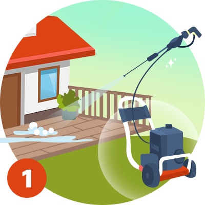 1. Pressure wash your outdoor surfaces.